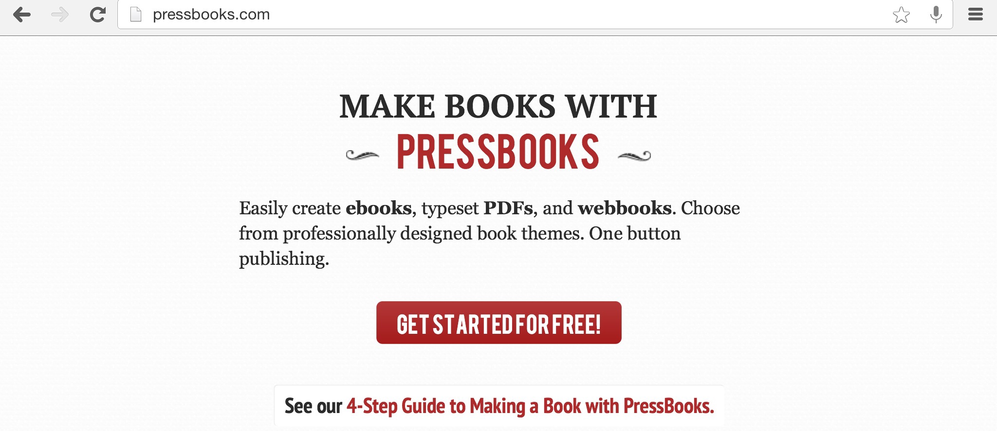 Bei Pressbooks kann man nach dem Registrieren ohne weitere Software eBooks erstellen. Man arbeitet nur mit dem Webbrowser. Das Ergebnis steht als Website zur Verfügung, wird aber wohl in der Regel auch als EPUB-, MOBI- oder PDF-Datei exportiert werden. Z.Z. können nur Texte und Bilder eingebunden werden.