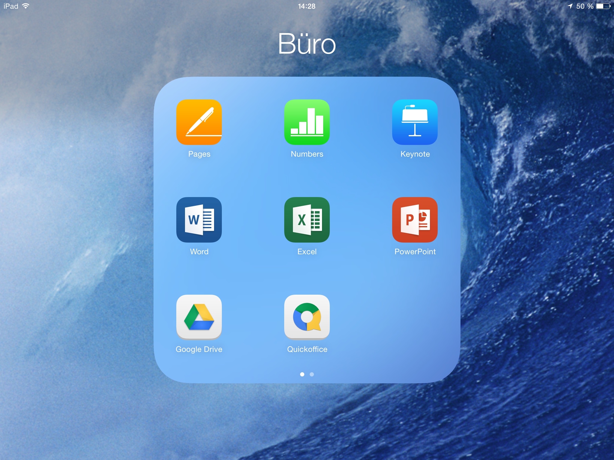 Im Augenblick aber ändert sich die Szene, denn auch Apple fügt seinen neuen Geräten iWorks bei, d.h. die Apps Pages, Numbers und Keynote. Ja und dann gibt es seit einer Woche auch Microsoft Office für das iPad, also die Apps Word, Excel und Powerpoint.