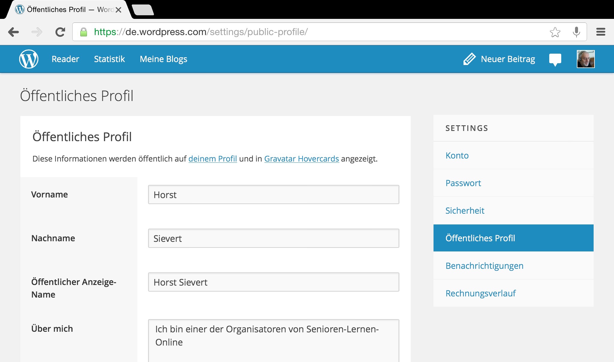 Bleibt die nächste Lösung und aus ursel muss Ursula Fritzle werden. Gemeinsam haben wir dann das Öffentliche Profil von WordPress (wieder)entdeckt. Ich habe dort wohl vor Jahren meinen vollen Namen und auch etwas Persönliches eingetragen. Wer jetzt auf den oben zitierten Gastbeitrag tippt, erkennt die Autorin Ursula Fritzle – und versteht dann die folgenden nicht von mir stammenden Zeilen etwas besser.