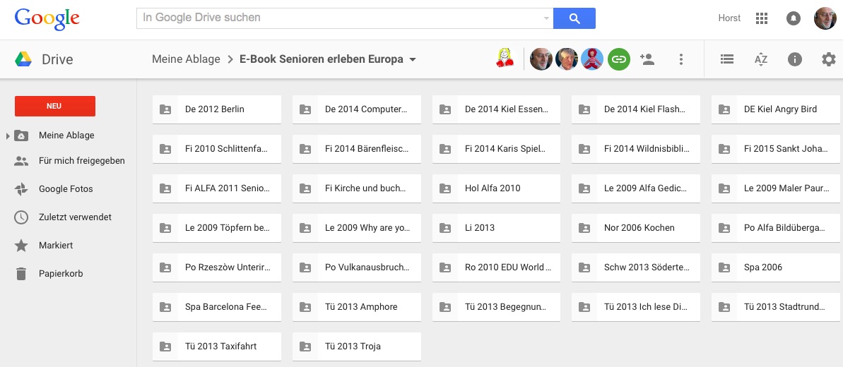Zunächst einmal benötigt man einen Bereich, in dem alle Daten gesammelt werden können. Sehr schnell war dazu das allen bestens vertraute Google Drive auserkoren. Mit anderen Cloud-Drives, wie z.B. Dropbox, hätte es natürlich auch geklappt. Wichtig war ein gemeinsamer Ordner, für den es schnell je Beitrag einen Unterordner gab. So konnten wir die denkbaren Bilder, Texte aus älteren Blogbeiträgen und die ersten neuen Textentwürfe für alle Beteiligten schnell zugänglich sammeln.