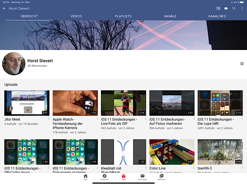 Die Aufnahmen lassen sich bei Bedarf bearbeiten, z.B. mit der App iMovie, und danach in den persönlichen Kanal bei YouTube laden.