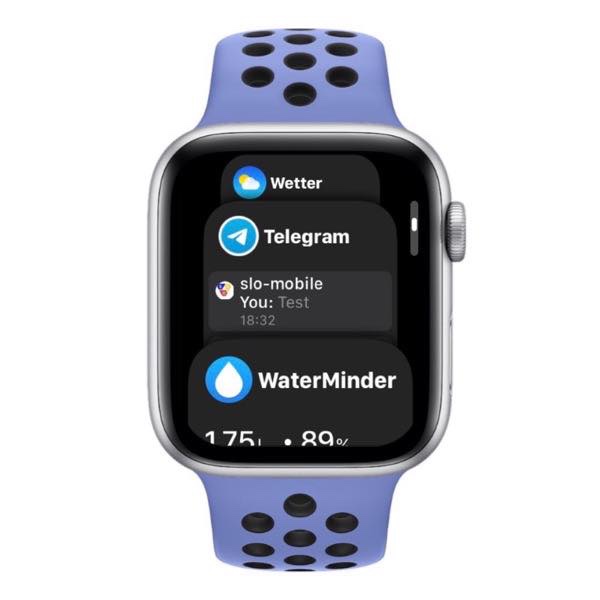 In meinem Dock erscheint oben immer die zuletzt benutze App und darunter die gewählten Apps Telegram, WaterMinder und Workout.
