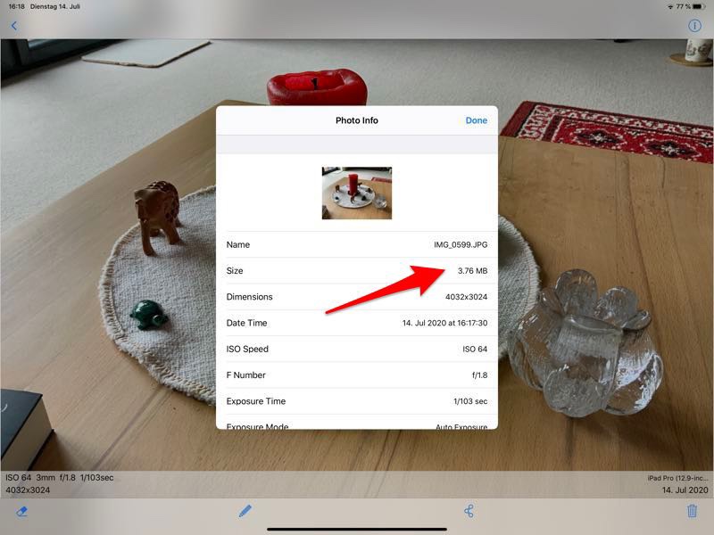 Inzwischen sind wir bei iOS 13 und iPadOS 13 gelandet und auf allen neuen Geräten ist für die Kamera „Hight Efficiency“ voreingestellt. Das hat sicher gute Gründe: Ein Vergleich der beiden Formate (Fotos oben und unten) zeigt, dass der Speicherbedarf für das neue Format nur etwa 50% beträgt.