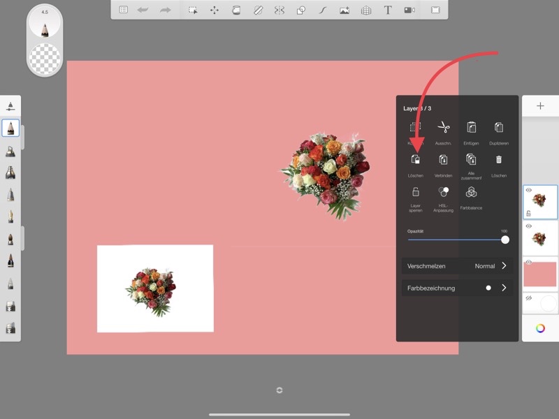 Die App SketchBook wird aber dann doch noch benötigt, wenn eine Fotomontage oder eine Collage erstellt werden soll. Die freigestellten Blumen haben leider noch einen breiten weißen Rand (siehe kleines linkes Foto unten).