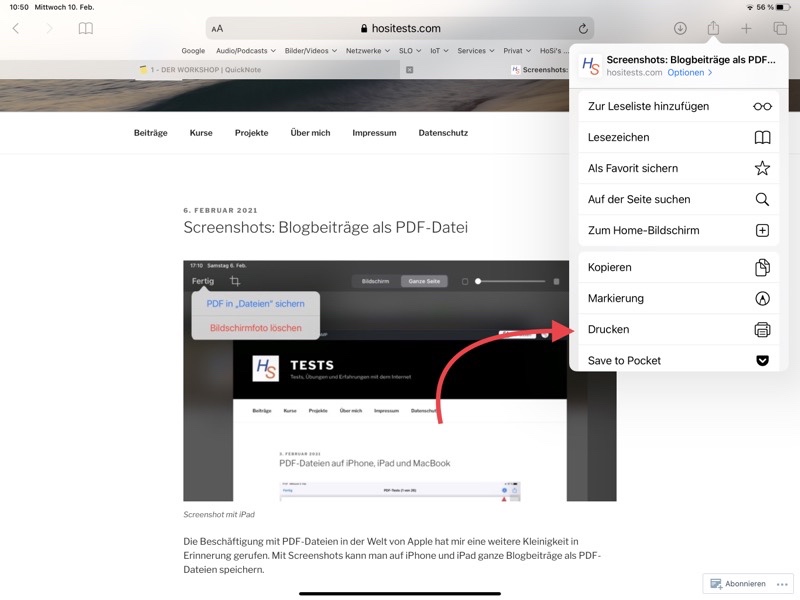 Das Vorgehen ist simpel und geht auf iPhone und iPad aus jeder App. Ich zeige hier, wie es mit einem meiner Blogbeiträge klappt, den ich in der App Safari geöffnet habe.