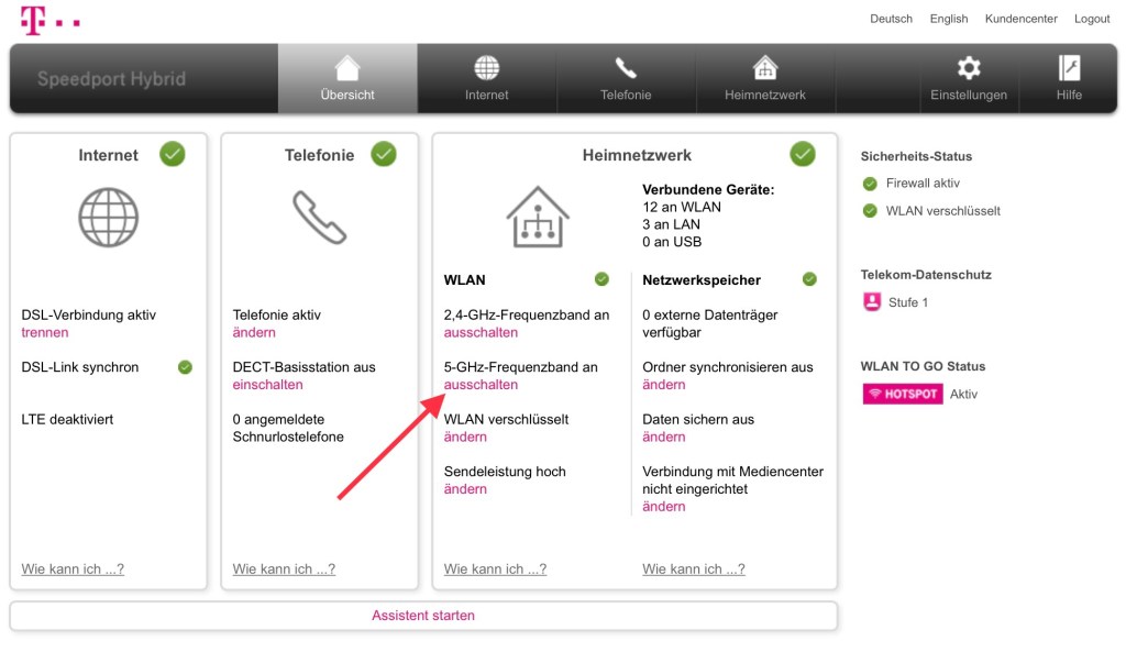 Bisher habe ich bei aller Spielerei mit mit smarter Technik kaum WLAN-Probleme gehabt, war aber durch Diskussionen vorgewarnt. Bei vielen smarten Geräten wird darauf hingewiesen, dass sie nur über ein WLAN mit 2,4 GHz funktionieren. Moderne WLAN-Router decken aber auch das 5 GHz-Band ab.