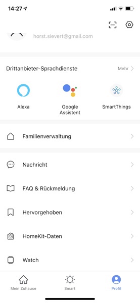 Durch die App Smart Life ist auch die Kopplung mit Drittanbieterlösungen, wie Amazon Alexa und dem Google Assistent möglich. Der Weg dazu führt über den Punkt >Profil des Startbildschirms.