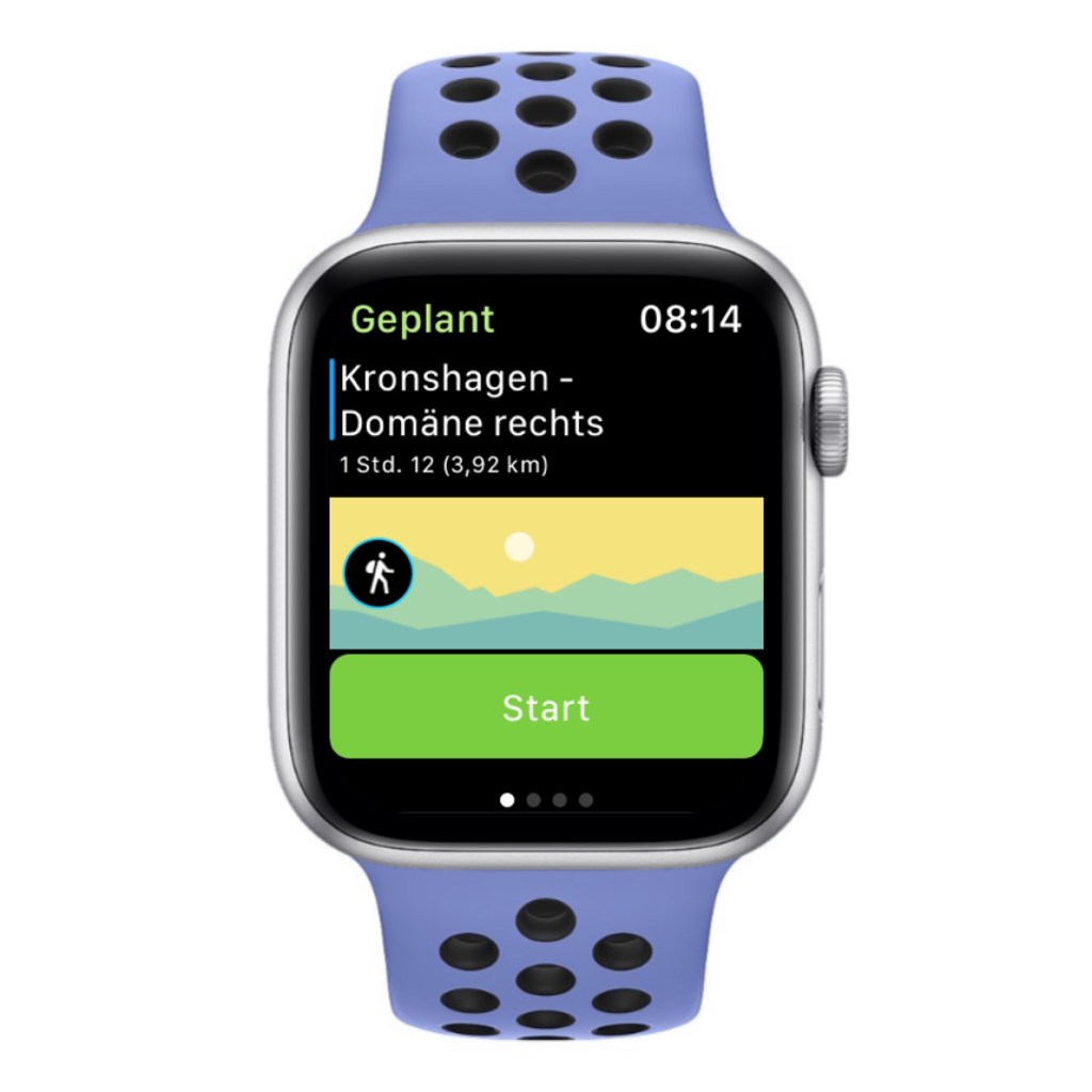 Die geplante Tour kann jetzt auf dem iPhone gestartet und auf einer schönen Karte verfolgt werden. Auch auf der Apple Watch kann man über die Krone starten. Dort werden allerdings nur die letzte geplante Tour oder Vorschläge von anderen angeboten.