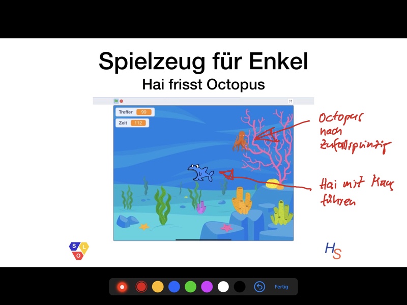 Als Fan der App Keynote gefällt mit, dass ich dort meine Folien recht einfach anlegen kann. Mit dem Apple Pencil kann man nämlich während der Live-Präsentation sehr gut Ergänzungen hinzufügen.