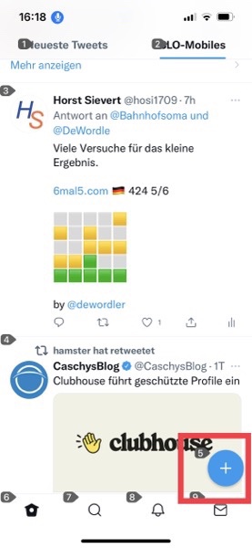 Im weiteren Verlauf öffne ich mit „fünf“ für das Objekt 5 den Bildschirm für die Texteingabe und das Anfügen des Bildes, um dann mit „zwei“ den Tweet abzusenden.
