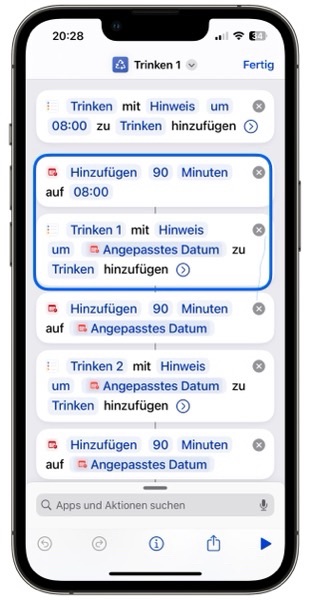 Oft hilft ein Blick über den Tellerrand. So auch bei meinem Problem mit der Erinnerung an mein Trinken alle 90 Minuten. Die hier beschriebene Lösung empfand ich als wenig elegant und durch die sozialen Medien fand ich jetzt Anregungen für eine bessere.