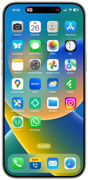 Seit Jahren befindet sich auf dem Display des iPhones oben ein schwarzes Viereck. Für mich war das bisher ein unwichtiges Ding, das früher einmal Notch (=Kerbe) genannt wurde und seit etwa 2 Jahren, d.h ab iPhone 14 Pro, ein Dynamic Island (=dynamische Insel) ist.