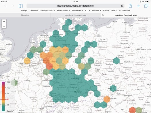 Hinter obigem Screenshot verbergen sich sehr viele über ganz Deutschland verteilte Feinstaubsensoren, die von vielen Menschen in eifriger Bastelarbeit zusammengebaut und installiert wurden. Das Team von Senioren-Lernen-Online bekam den Anstoß für diese Bastelarbeit von Marlit. Sie hatte bei SLO mit dem Mikrocontroller NodeMCU gebastelt und diesen jetzt bei der Vorstellung eines Projektes über Feinstaubmessungen im Raum Stuttgart und Freiburg wieder entdeckt. In ihren Blogbeiträgen Feinstaub ALARM und Feinstaub Teil 2 beschreibt sie ihre Erfahrungen. Der Weg von Uta und mir hat etwas länger gedauert, denn wir sollten wohl unsere eigenen Erfahrungen sammeln ;=).