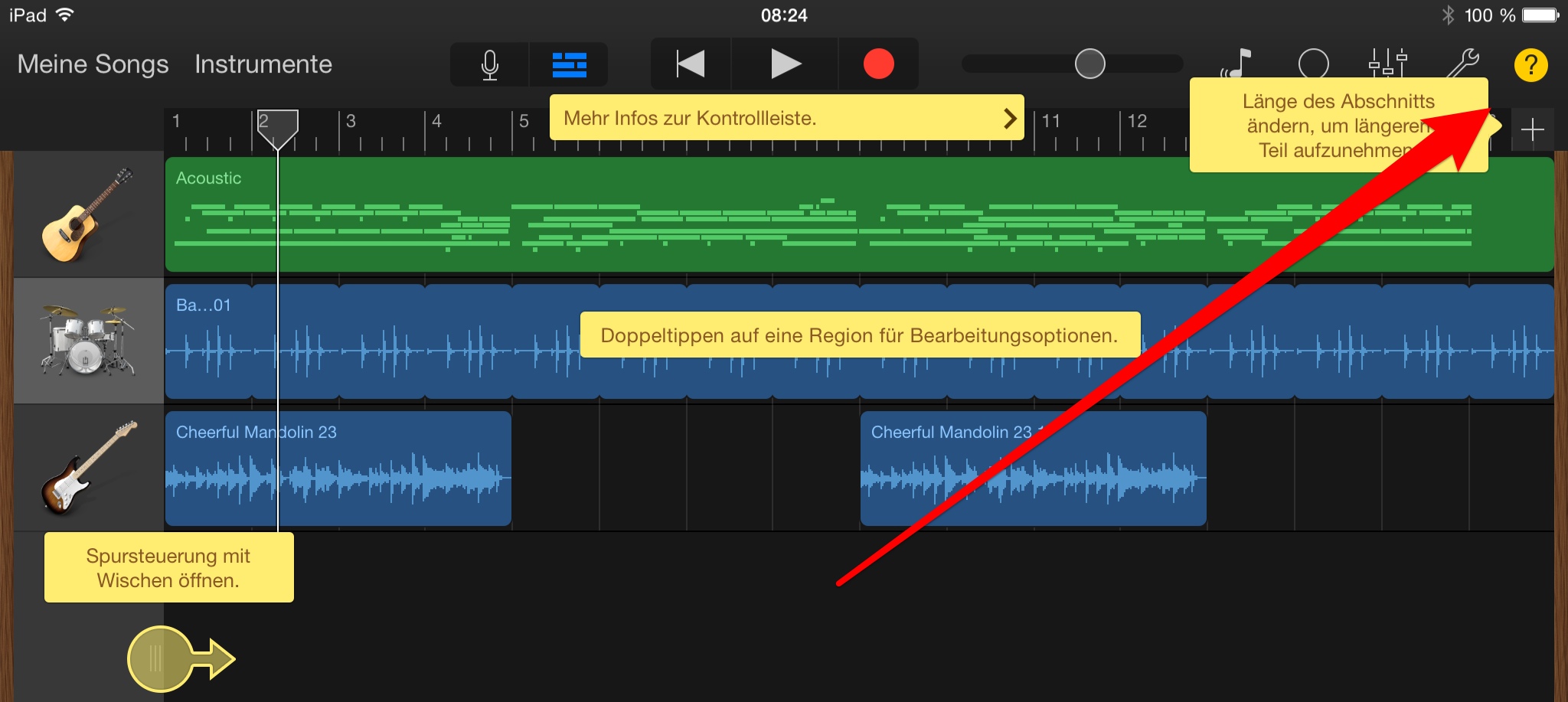 Mein verzweifelter Kampf mit der App GarageBand scheint zu Ende zu sein. Der Knoten ist endlich geplatzt. Zumindest für schlichte kleine Musik- und Sprechstückchen.