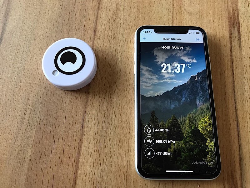 Es ist ein paar Wochen her, dass ich hier über meine Spielereien mit dem handlichen Ruuvitag berichtet habe, einem kleinen kreisrunden Gerät mit Sensoren für Temperatur, Luftfeuchtigkeit, Luftdruck und Bewegung. Die Daten werden über Bluetooth LE an eine Smartphone-App übermittelt und so z.B. auf dem iPhone angezeigt.